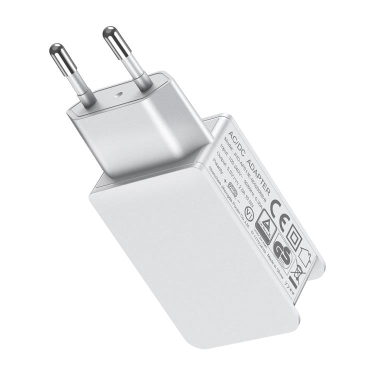 白色品欧洲插脚USB充电电源适配器
